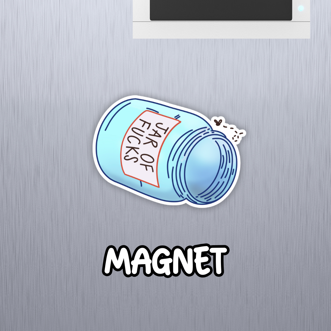 Running low on patience? Same. This “Jar of Fucks” magnet is the perfect way to let everyone know your reserves are bone dry. Stick it on your fridge, desk, or filing cabinet for a daily dose of honesty and humor. Durable, vibrant, and unapologetically done.